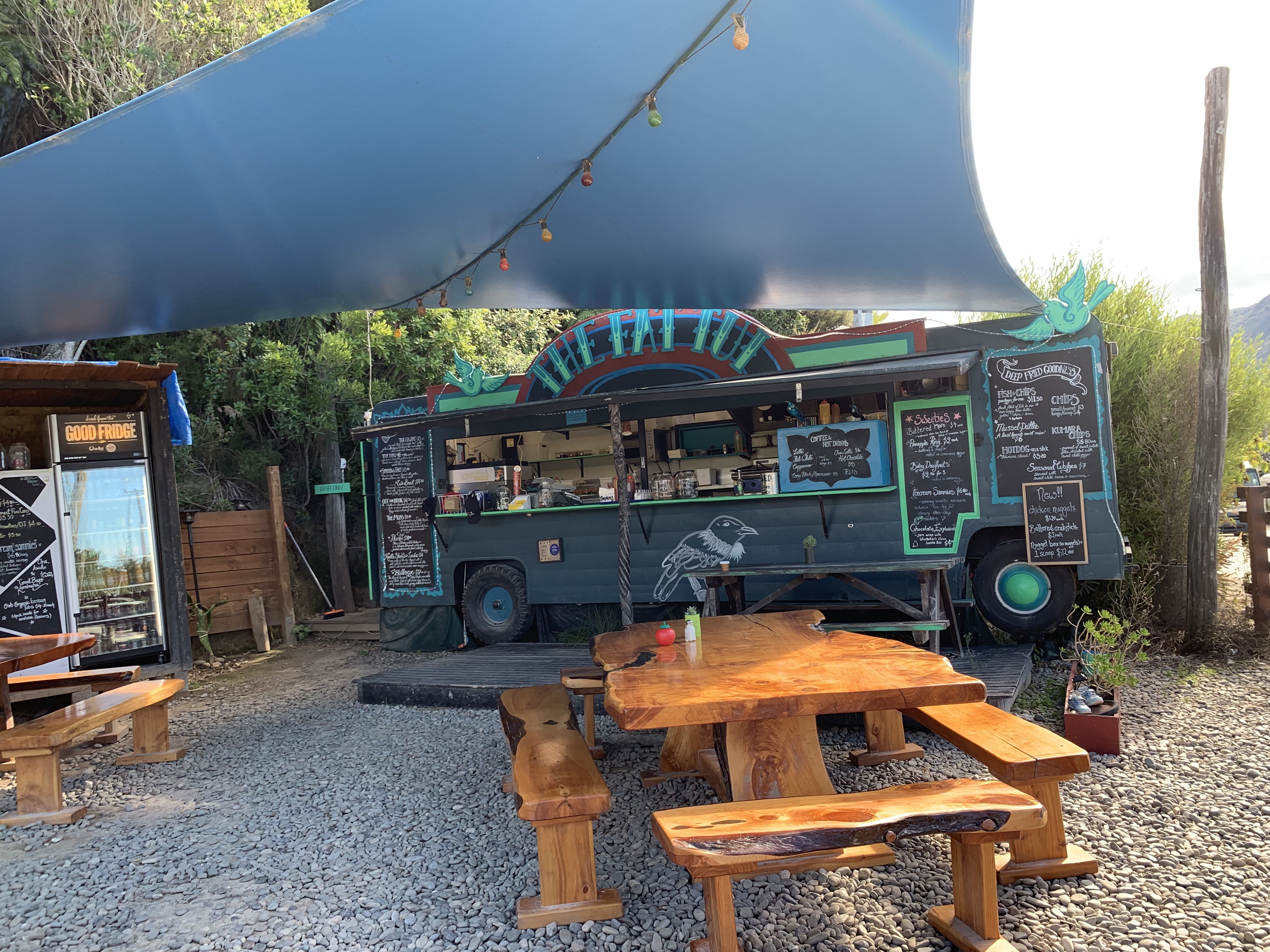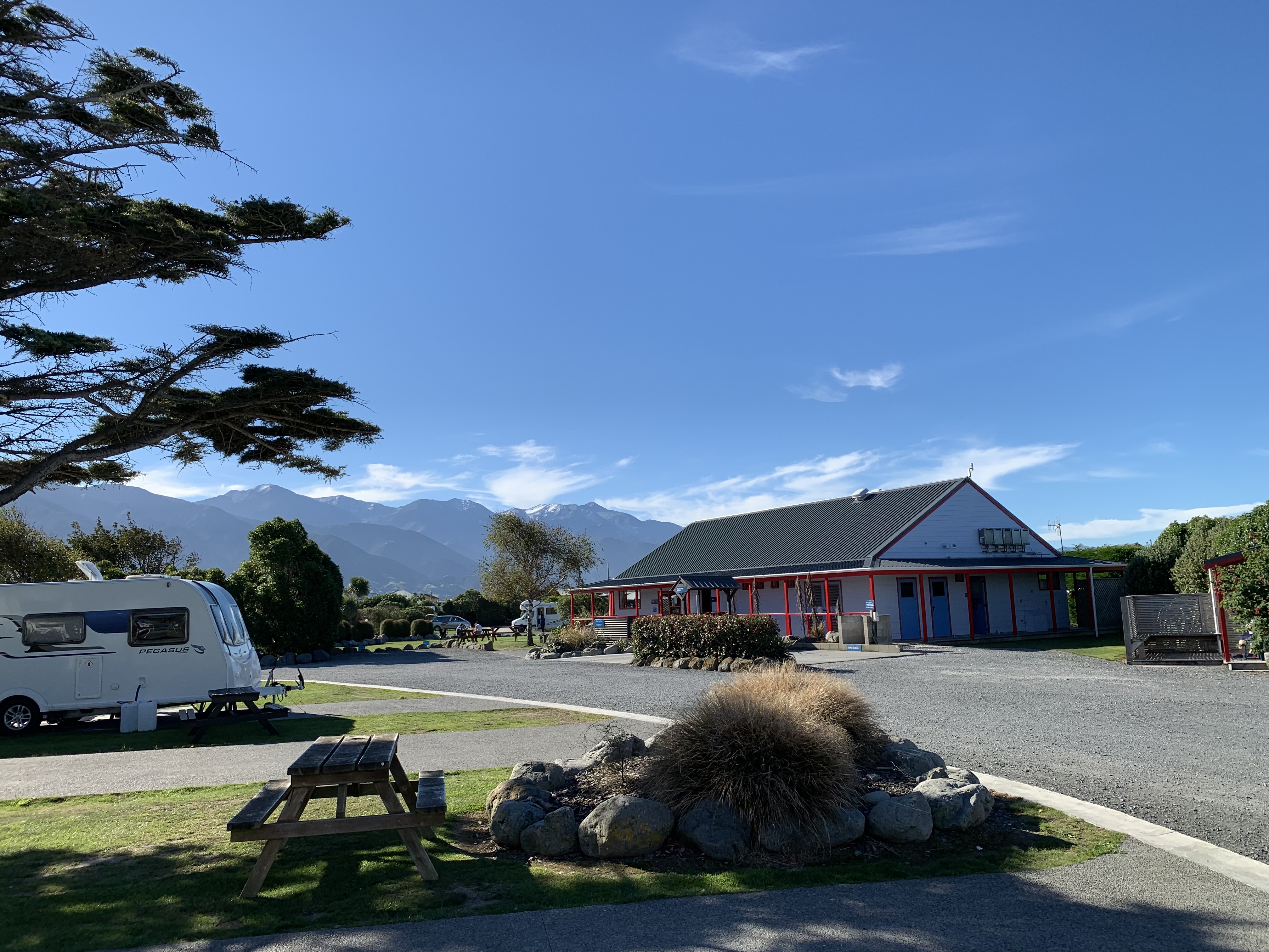 Kaikoura was next, mainly known for whale watching. Again, the weather wasn’t great, but our campsite had a beautiful setting, with views of snow capped mountains in the distance (TOP 10 Holiday Park). We were actually really happy to have a relaxed couple of rainy days. It was sunny on the day we arrived (typical) but on our full day, we decided to go for a chilly walk along the black pebble beach, skimming stones, warming up with copious cups of coffee and a cosy lunch nearby at Hislops Whole Foods café.